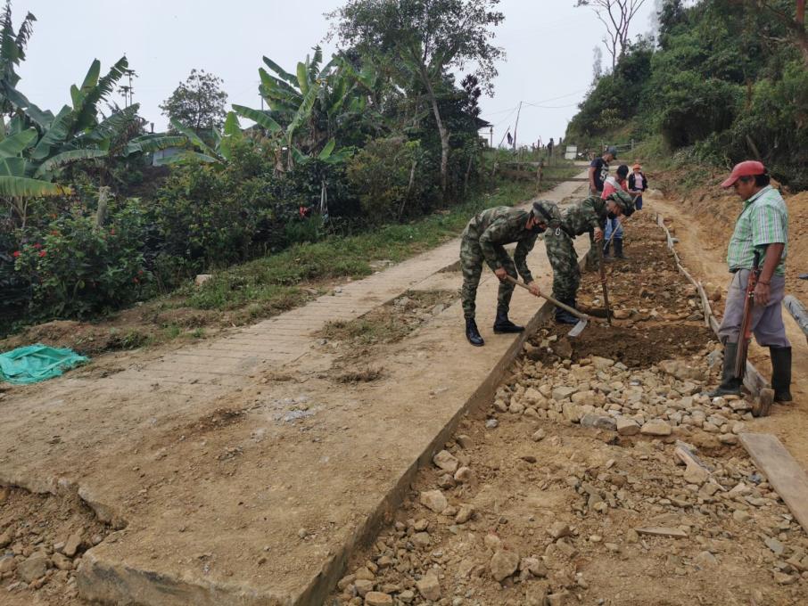 Soldados pertenecientes al Batallón de Infantería de la Sexta Brigada, llegaron hasta la comunidad de los corregimientos de San Bernardo y San Juan de la China de la Capital tolimense, para mejorar la movilidad en algunos tramos viales que sirve como vías de acceso.