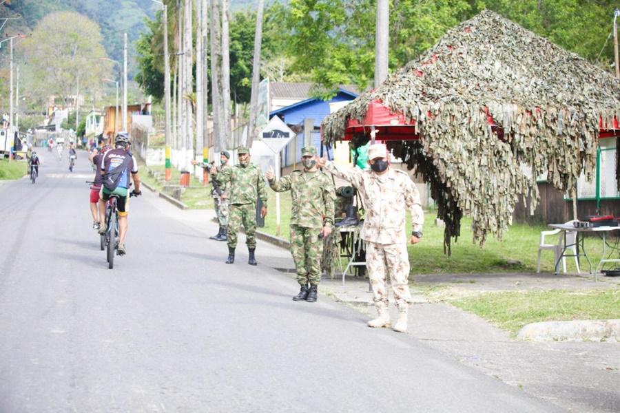 Durante una ruta de 12 kilómetros, la Administración Municipal ubicó puntos de hidratación para ciclistas, entregando elementos de protección personal y mensajes de autocuidado para evitar el contagio del Covid-19.