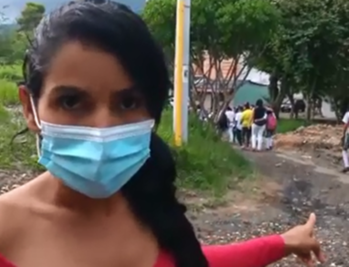 "Nosotros queremos hacer una denuncia sobre la vía de entrada y salida del colegio ya que se encuentra en mal estado, cuando llueve se pone peor y puede ser peligroso para nuestros niños o nuestros abuelos que vienen a recogerlos", dijo una denunciante identificada como Lorena Palomino.