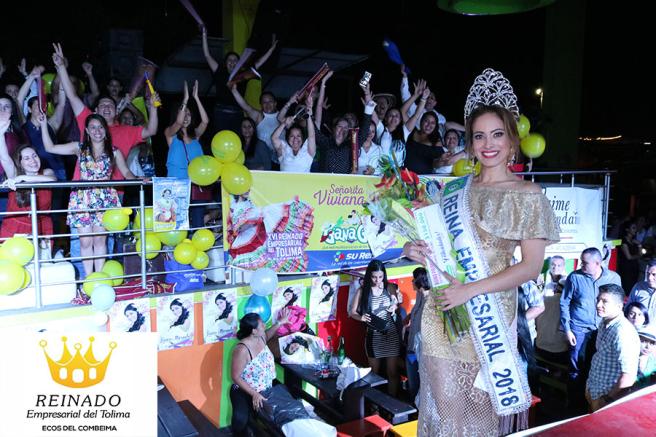 Contenido multimedia principal Viviana María Varón Ospina es la nueva reina empresarial del Tolima La señorita Seapto S.A. se hizo con la corona de la decimosexta versión del evento tras demostrar su talento, gracia y gran espíritu empresarial.