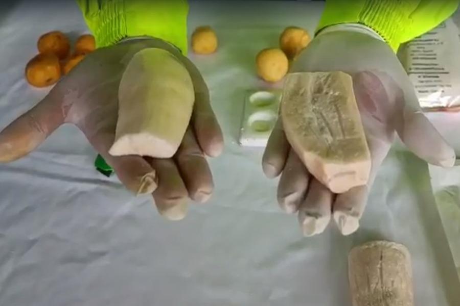 Así las cosas, la revisión fue compleja teniendo en cuenta que tenían que destapar cada bolsa y revisar cada uno de los tubérculos congelados, que se encontraban en las formas irregulares de la yuca y de las papas generando dudas en los uniformados que se encontraban realizando esta operación por lo que muchas de las 'yucas' congeladas tenían forma diferente a las demás, por lo que el hielo no permitía realizar la prueba con el reactor químico Narcotex, siendo necesario descongelar los tubérculos para el procedimiento.