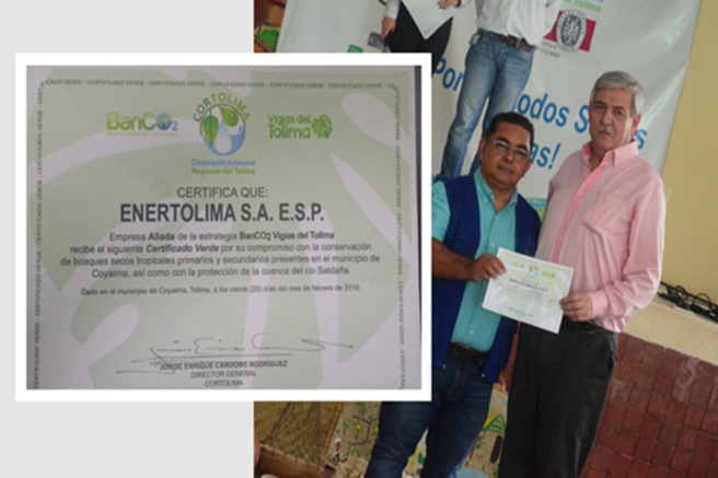 Contenido multimedia principal Enertolima recibió certificado verde por Cortolima La autoridad ambiental le entregó la distinción a la empresa energética debido al respaldo que le viene brindando a las comunidades indígenas de Coyai...