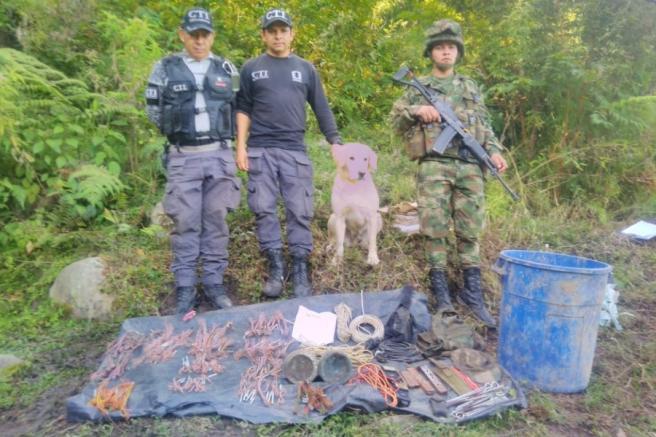 Contenido multimedia principal CTI y Ejército Nacional hallaron un depósito ilegal de explosivos de las desmovilizadas Farc El hallazgo se presentó en zona rural de Chaparral, donde además las autoridades encontraron papelería alusiva al desmovilizado grupo guerrillero y ma...